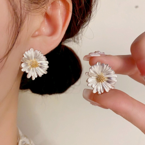 【茉美飾】無毒高級感雛菊純銀耳針耳環