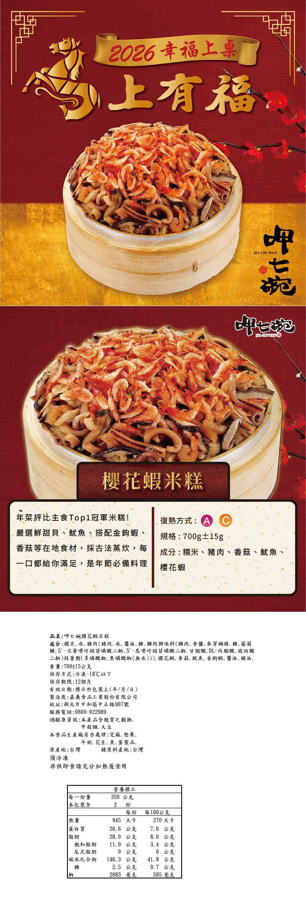 2026【呷七碗】櫻花蝦米糕(700g) |年菜|年節美食|團圓年菜