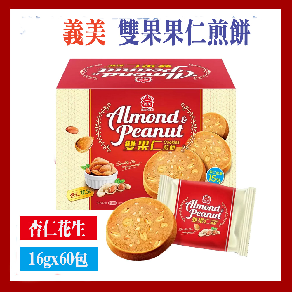 - 1.商品組合/規格:義美雙果仁煎餅-杏仁花生(美式賣場)(16公克X60包)