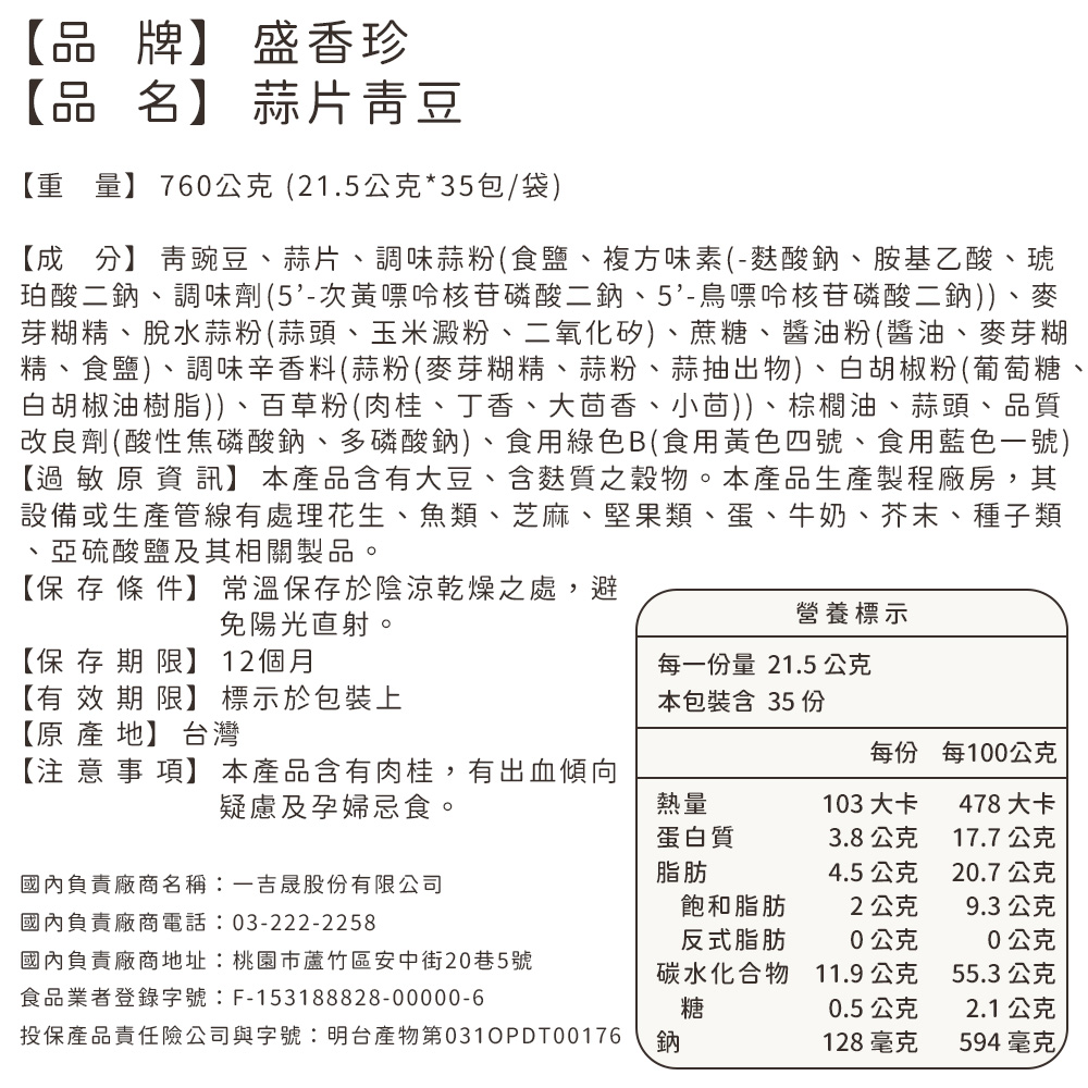 【美式賣場】盛香珍 蒜片青豆(21.5gx35份/包)