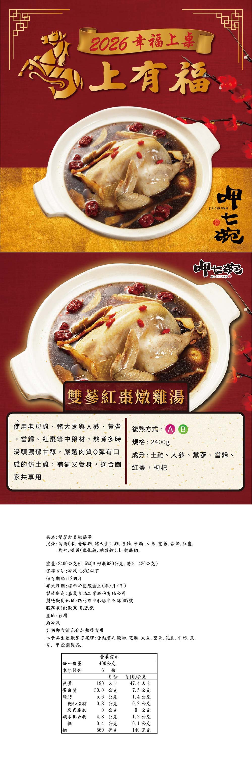 【呷七碗】2026雙嵾紅棗燉雞湯_2400g 固形物980g|年菜|年節美食|團圓年菜