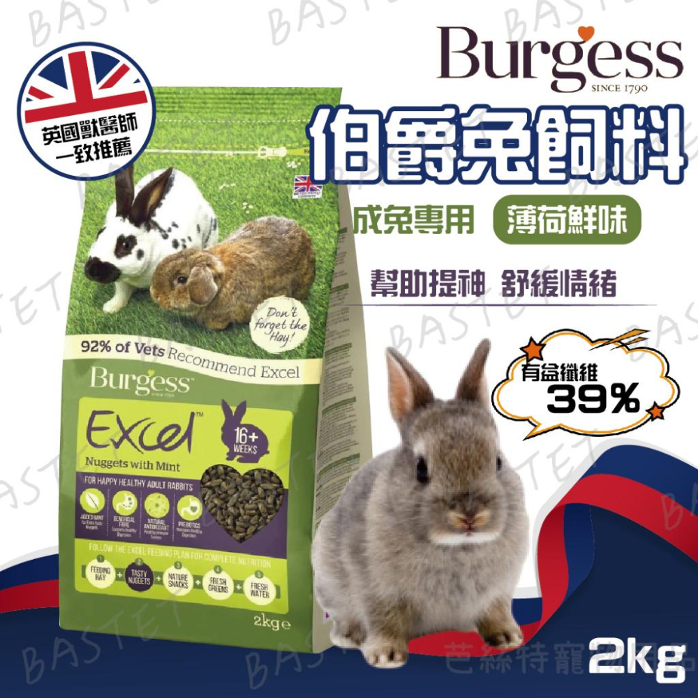 英國伯爵Burgess Excel 伯爵士 成兔專用 薄荷鮮味 兔子飼料 小寵飼料 機能飼料 小動物主食 成兔