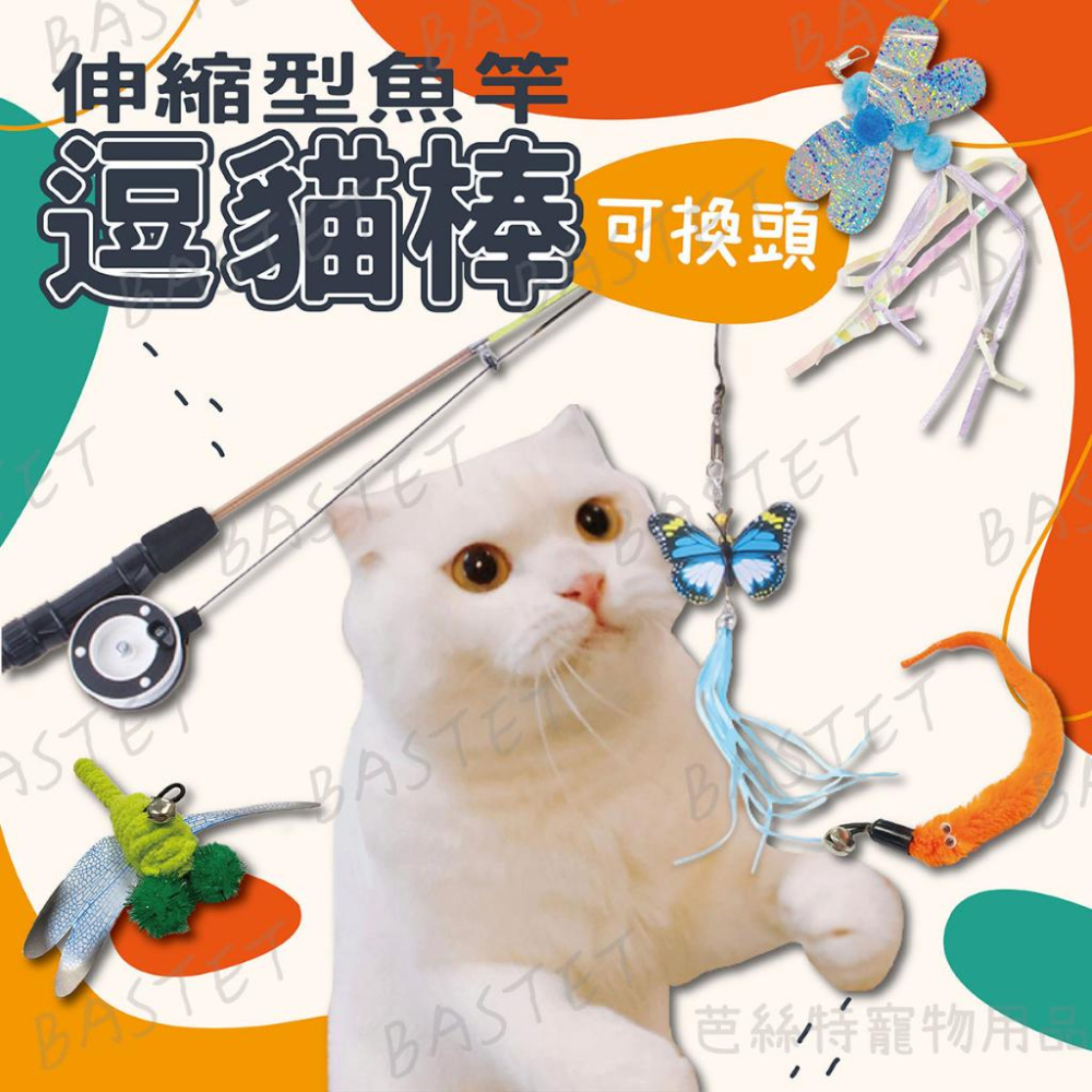 可換頭伸縮形魚竿逗貓棒 兩節魚竿 釣魚竿 逗貓棒 逗貓玩具 貓咪玩具