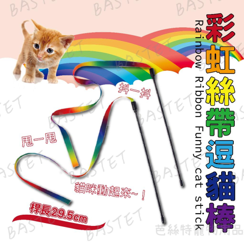 讓主子贏在起跑點從小就做體操訓練~彩虹絲帶逗貓棒 雙面彩虹 逗貓棒 釣貓棒 貓咪玩具 七彩逗貓棒 逗貓玩具