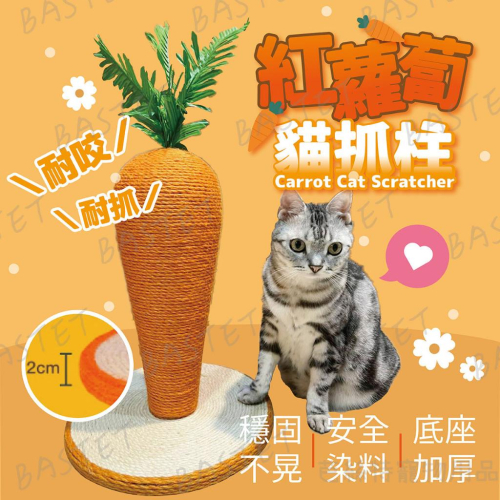 https://s-cf-tw.shopeesz.com/file/sg-11134202-22120-8xtk78ydg0kv36 ★★★注意事項★★★ 1.因包裝成本物料上漲,本賣場訂單未滿100元(不含運費)無法出貨,敬請見諒! - 嘿喲嘿喲拔蘿蔔~ 紅蘿蔔造型超可愛,貓咪一定玩到瘋 高顏質玩具,當居家擺飾也好看 年輪式纏繞,更加緊緻耐用 底盤有加重加厚設計 安裝超簡單,手殘人都會 大:直徑約30cm、高約43cm 小:直徑約25cm、高約29cm #紅蘿蔔貓抓柱 #造型貓抓柱 #劍麻貓抓板 #貓抓墊 #貓抓板 #貓爬架 #磨爪