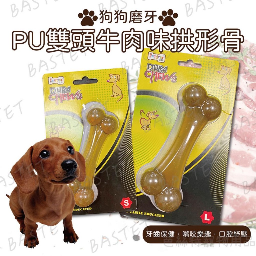 看我們家狗仔沒事就在咬看得我都累了~狗狗磨牙PU雙頭牛肉味拱形骨 潔牙骨 磨牙棒 潔齒 啃咬 耐咬 狗玩具