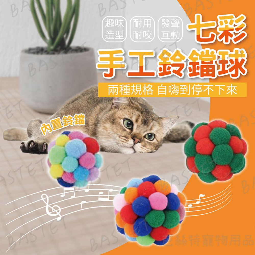 手做七彩鈴鐺球 毛絨球 彈力球 糯米毛球 貓咪玩具 狗狗玩具 潔齒玩具 寵物玩具