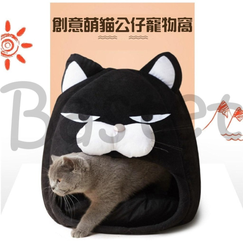 這個貓窩的臉看起來也太欠揍了吧~四季通用寵物窩 不屑黑貓 創意萌貓 狗窩 貓窩 睡窩 睡床 睡墊 寵物房子 保暖窩