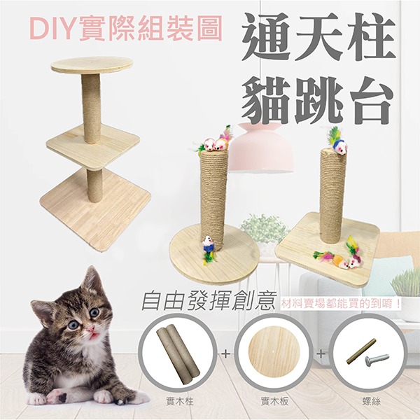 柱形造型抓柱可讓貓咪背部伸展與放鬆