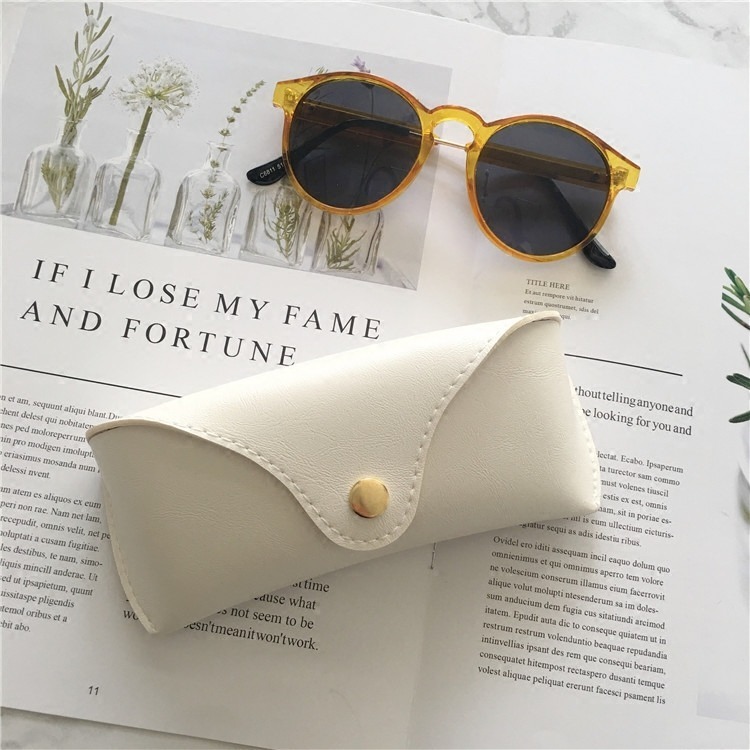 商品介紹☞背面軟皮,弧狀前側為硬挺的 (扣子那側),不怕眼鏡被壓到