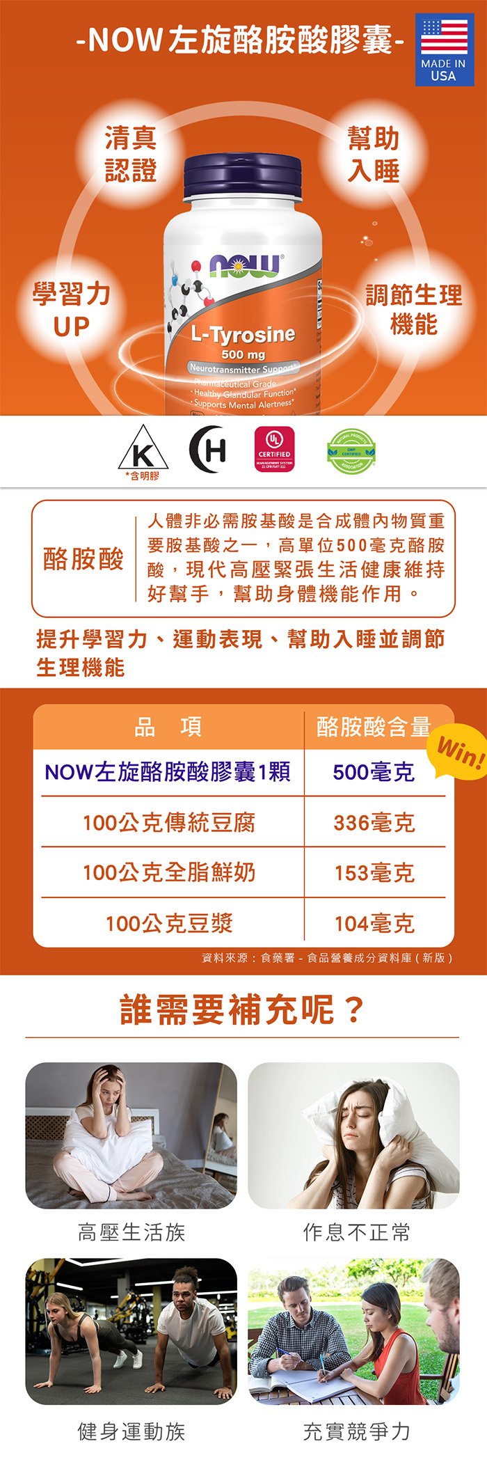 成分:L-酪胺酸、明膠(牛皮)、硬脂酸、二氧化矽