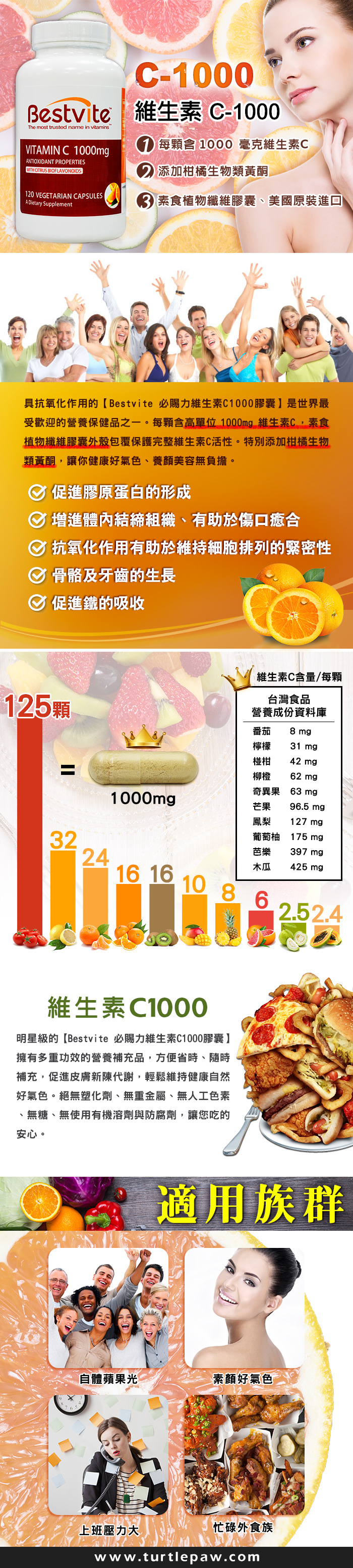品名:【美國Bestvite】必賜力維生素C1000 (維他命C1000) 膠囊1瓶(120顆) [全素]