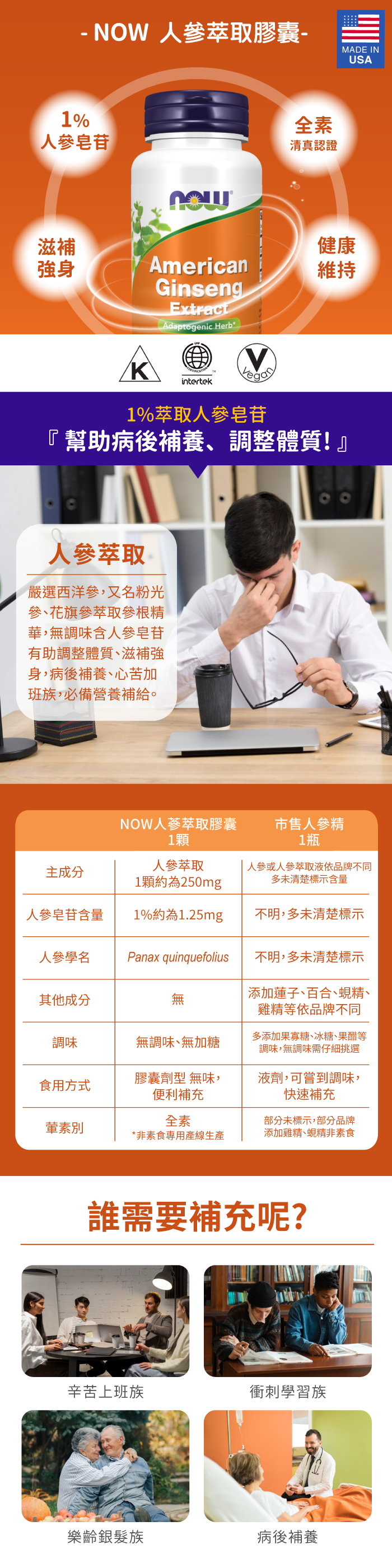 成分:西洋參萃取物(麥芽糊精、西洋參萃取物)、羥丙基甲基纖維素、L-抗壞血酸棕櫚酸酯(抗氧化劑)