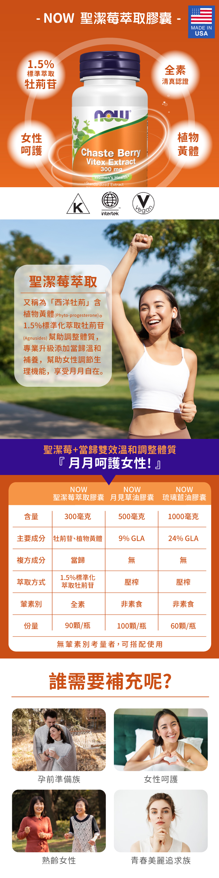成分:西洋牡荊複方萃取物(西洋牡荊、麥芽糊精)、當歸、羥丙基甲基纖維素、硬脂酸、二氧化矽
