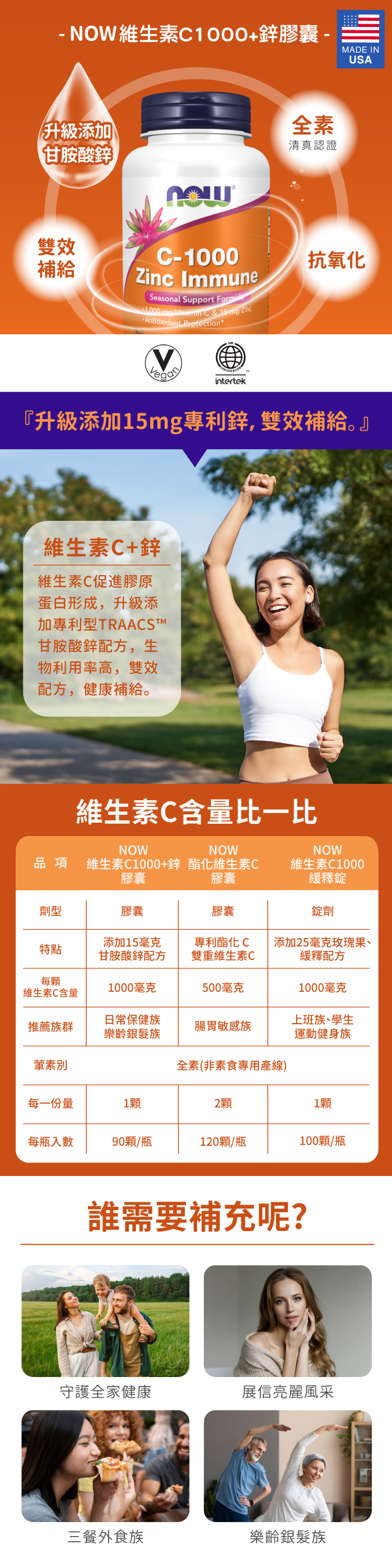 品名:【NOW】維生素C1000+鋅膠囊