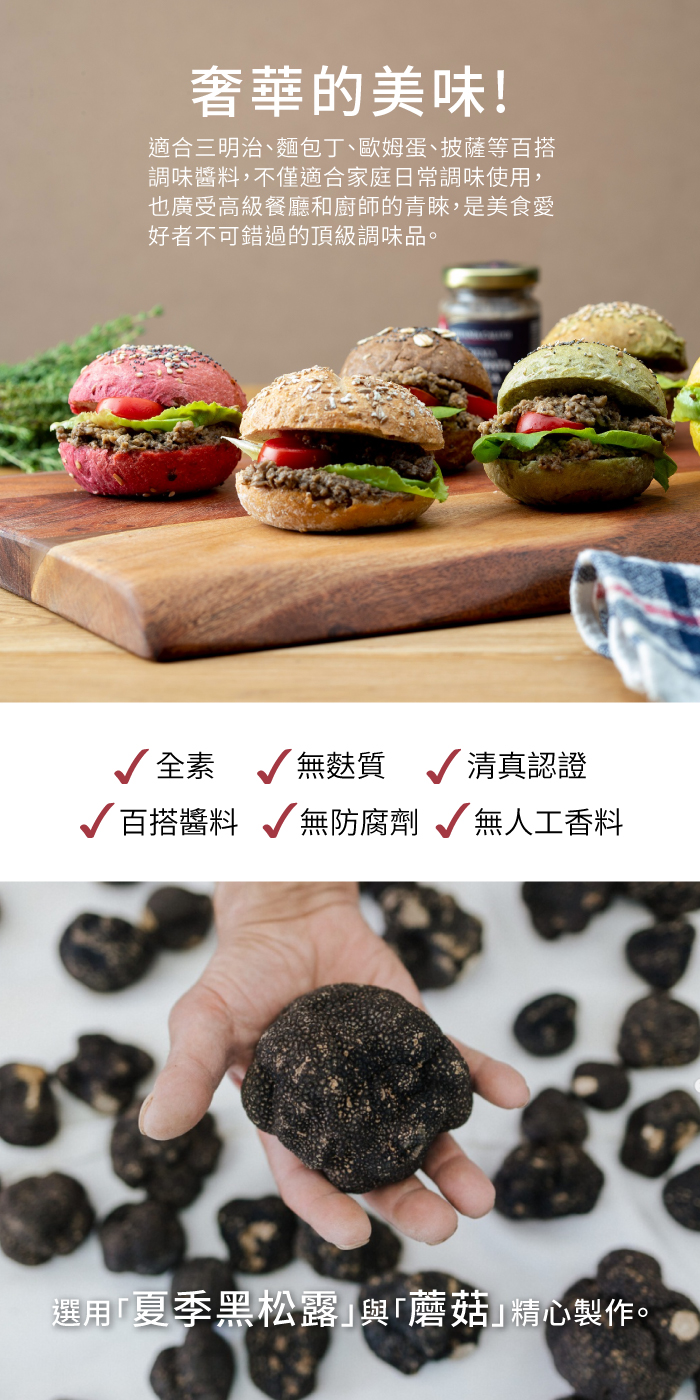 成分:洋菇、葵花籽油、夏季黑松露、鹽、葵花籽卵磷脂、辛香料(胡椒)、香料
