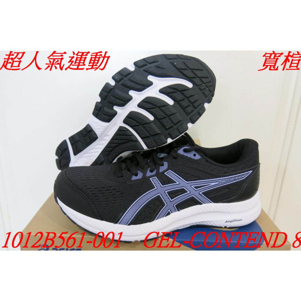 寬楦.超人氣運動.ASICS 亞瑟士 GEL-CONTEND 8 黑紫慢跑鞋.1012B561-401