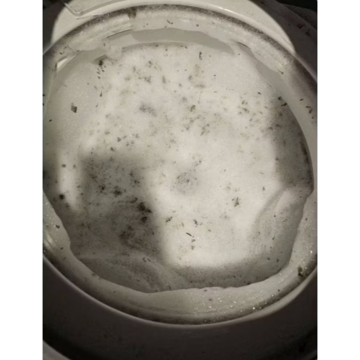 5.排掉廢水(撈起漂浮髒物) 並重新加入清水讓洗衣機重新轉動清洗一次即可。有漂浮黑垢要撈起來,切記