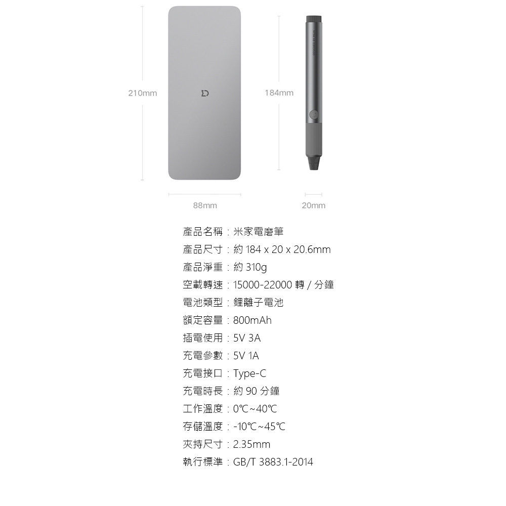 產品名稱:米家電磨筆產品尺寸:約184 x 20 x 20.6mm產品淨重:約310g