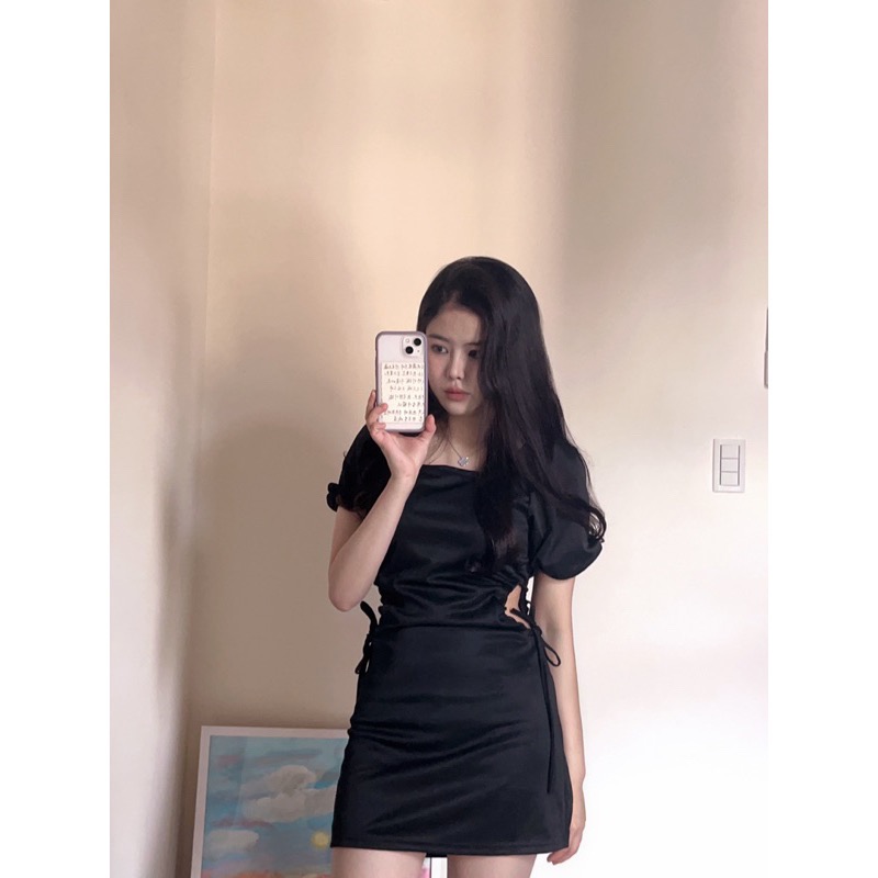 現貨🖤 實拍📷 挖洞 露肚洋裝 短袖 連衣裙 連身裙 泡泡袖 公主裙 小黑裙 生日穿搭 餐廳穿搭 小禮服