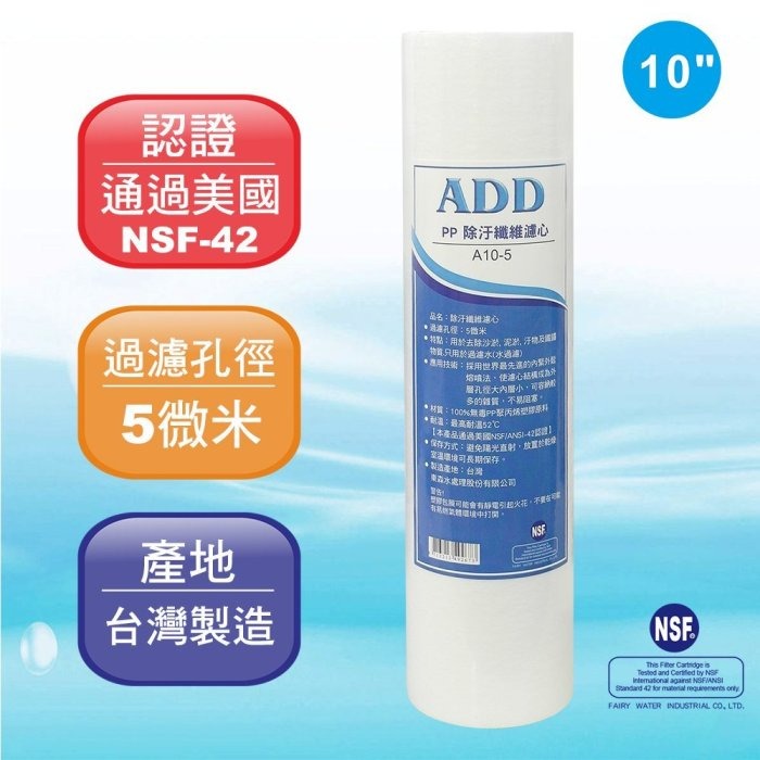 ADD-PP棉質濾心《台灣製》通過美國NSF-42認證