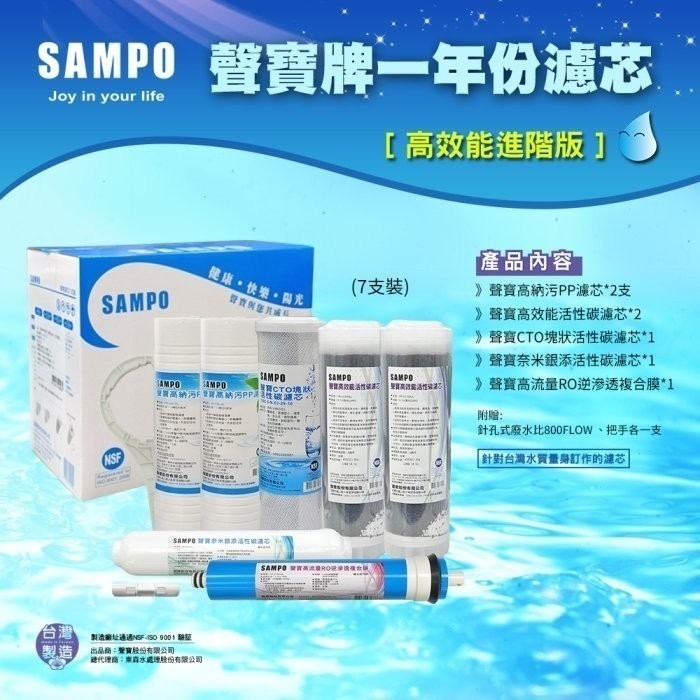 聲寶牌SAMPO 高效能一年份濾心 7支裝(進階版)(含RO膜&廢水比)