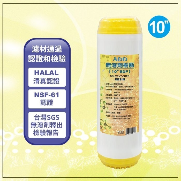 【水易購淨水】ADD-EDF無溶劑離子交換樹脂濾心《原料取得HALAL清真、NSF-61認證、SGS無溶劑釋出檢驗》