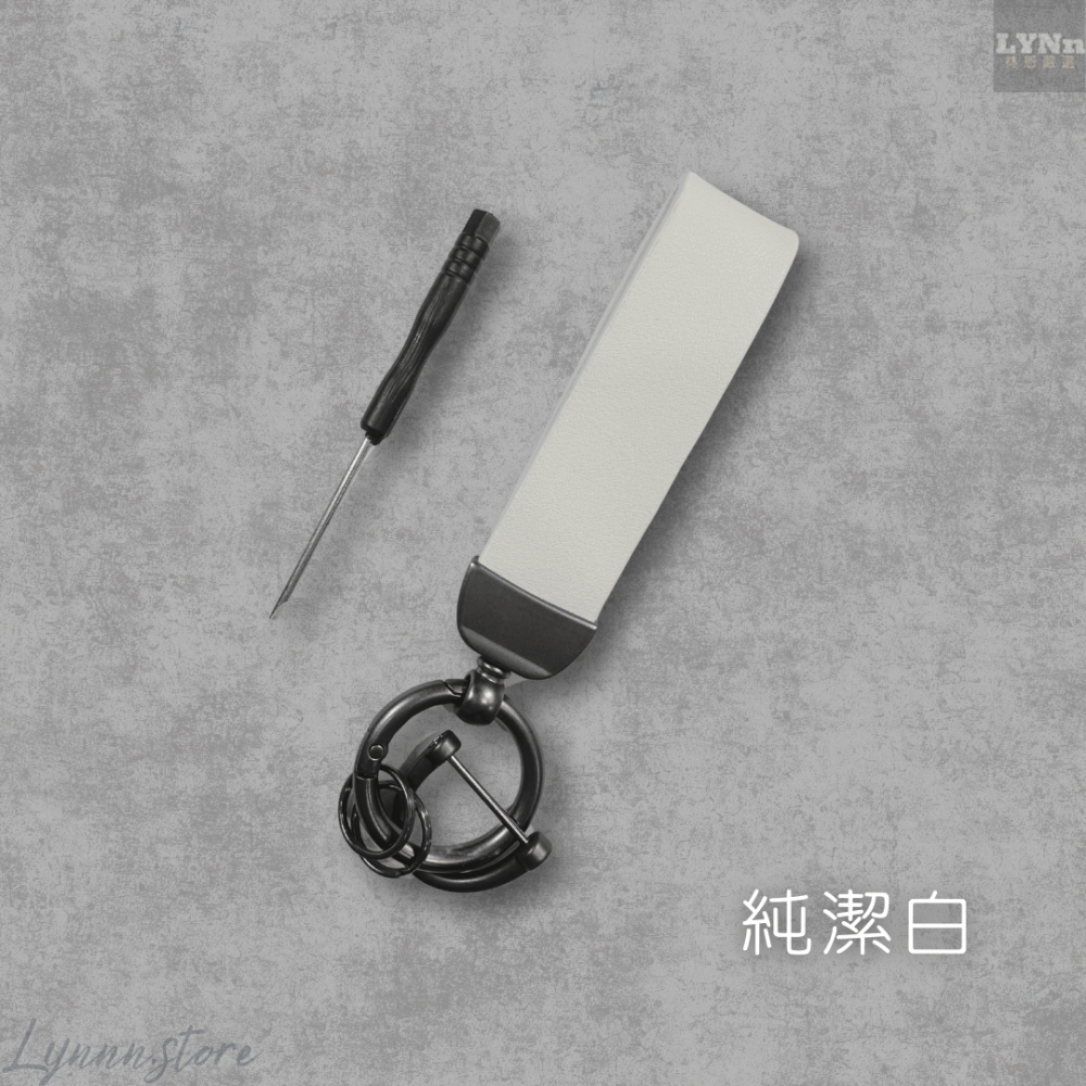 純潔白 極簡 經典 素色 真皮 染色 鑰匙圈 掛件 汽車用 機車用 禮物 交車禮