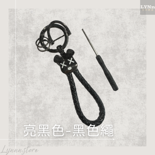 亮黑五金-黑色繩 熊熊 編織 鑰匙圈 家用 車用 機車 汽車 鑰匙收納 人造皮革PVC 小禮物 交換