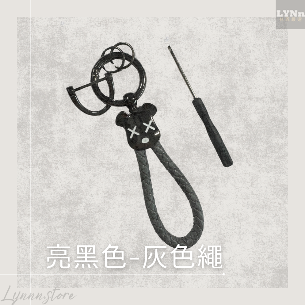亮黑五金-灰色繩 熊熊 編織 鑰匙圈 家用 車用 機車 汽車 鑰匙收納 人造皮革PVC 小禮物 交換
