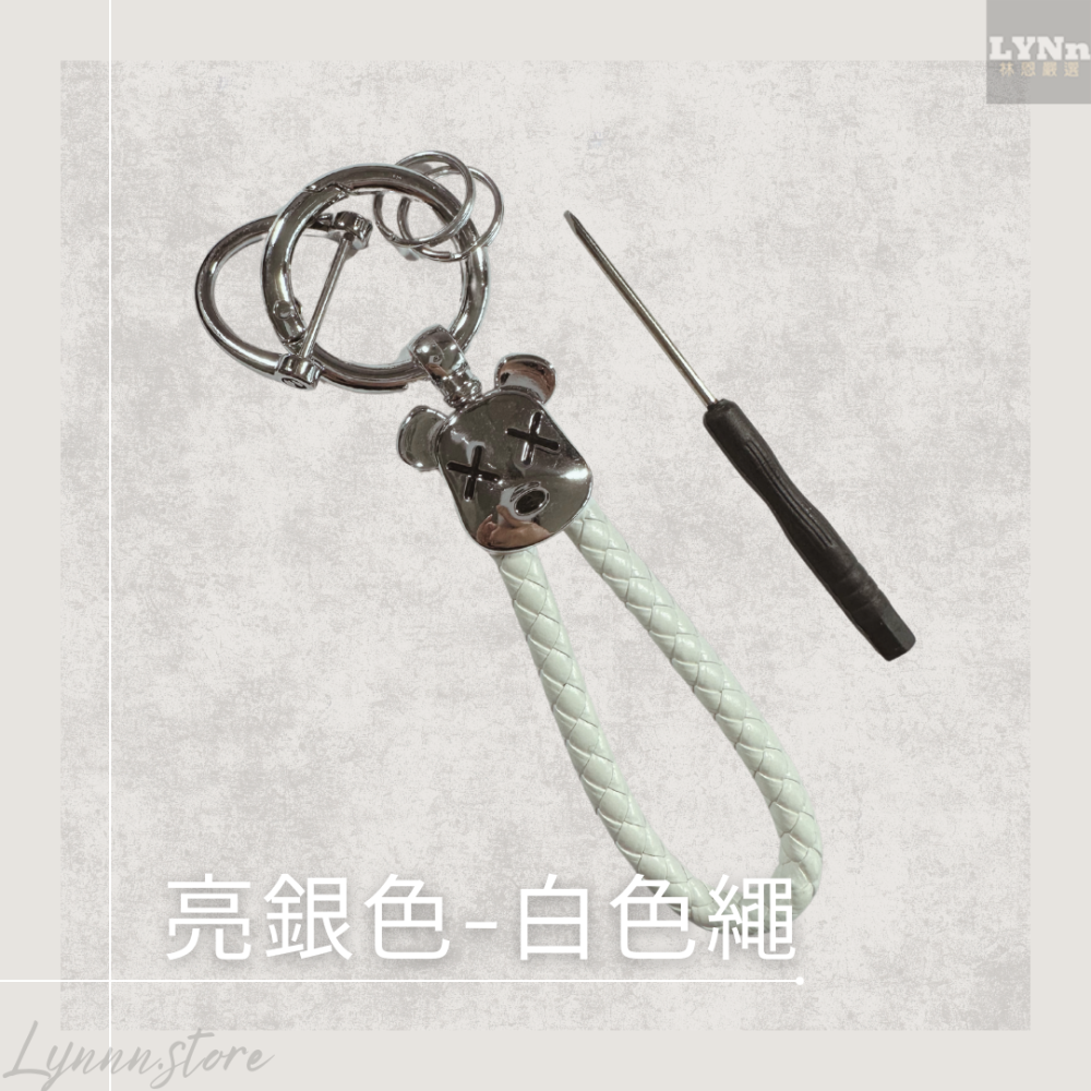 亮銀五金-白色繩 熊熊 編織 鑰匙圈 家用 車用 機車 汽車 鑰匙收納 人造皮革PVC 小禮物 交換