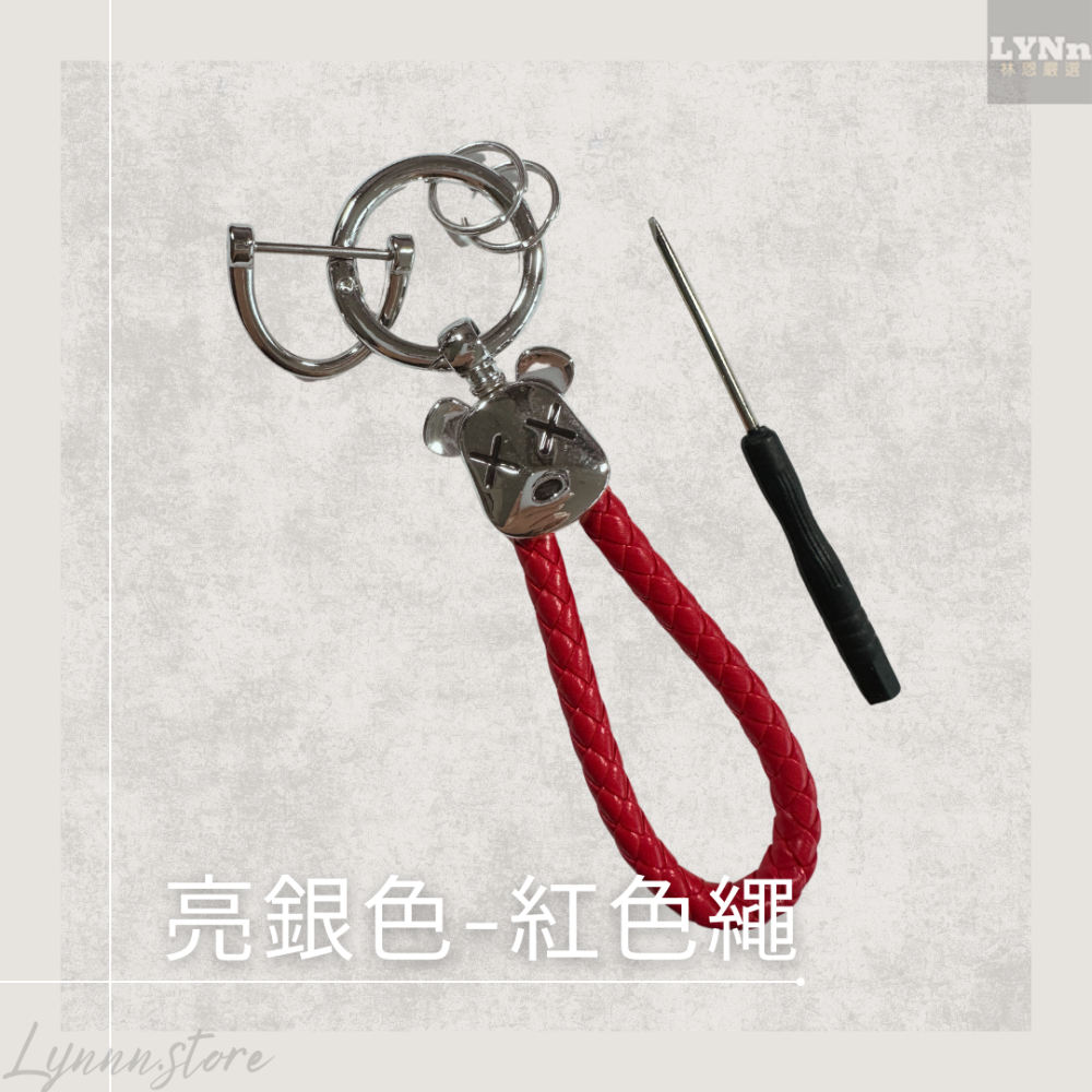 亮銀五金-紅色繩 熊熊 編織 鑰匙圈 家用 車用 機車 汽車 鑰匙收納 人造皮革PVC 小禮物 交換