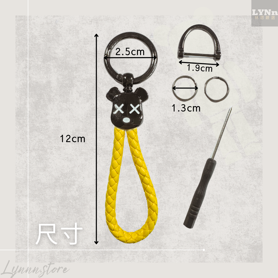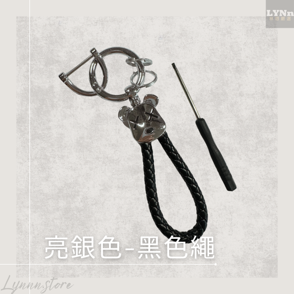 亮銀五金-黑色繩 熊熊 編織 鑰匙圈 家用 車用 機車 汽車 鑰匙收納 人造皮革PVC 小禮物 交換