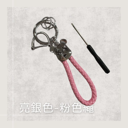 亮銀五金-粉色繩 熊熊 編織 鑰匙圈 家用 車用 機車 汽車 鑰匙收納 人造皮革PVC 小禮物 交換