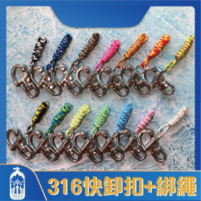 [海咖]316快卸扣+綁繩 潛水好物 手工編織傘繩配件 客製