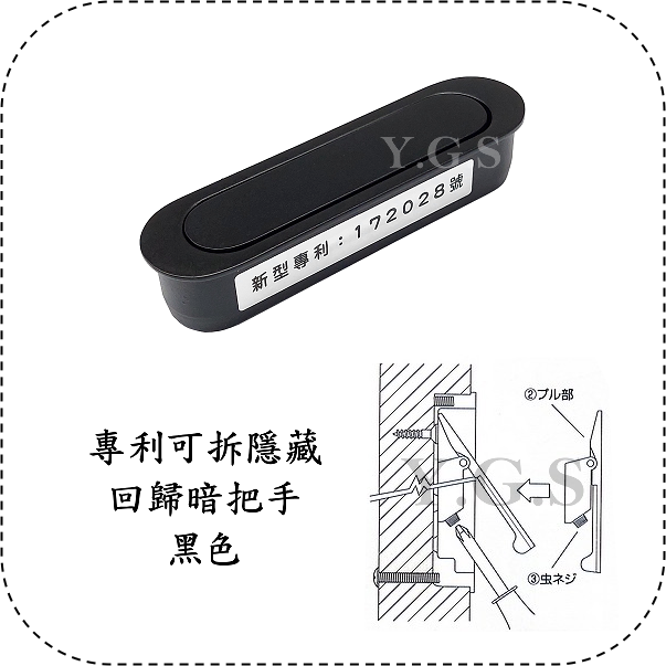 Y.G.S專利回彈把手是一種把手設計,由把手本體和一個彈簧機構組成。這種把手的主要特點是當手放開時,彈簧可以使把手回彈到原來的位置。這種設計通常用於需要反復使用的操作中,例如門把手、抽屜拉手、拉門把手等。