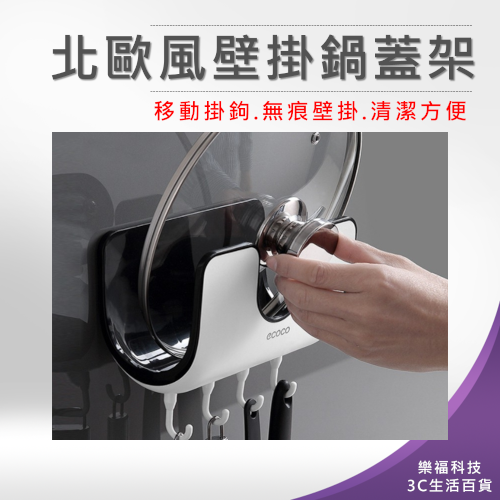 鍋蓋架附4個可移動式掛勾,收納更多元!