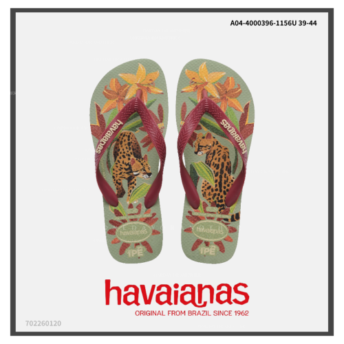 配色與材質: 該款式採用煙燻綠鞋底搭配深紫紅色(或漿果色)的亮面鞋帶,鞋帶上印有標誌性的立體 Havaianas Logo材質主要為高品質橡膠,提供舒適感與耐用性。