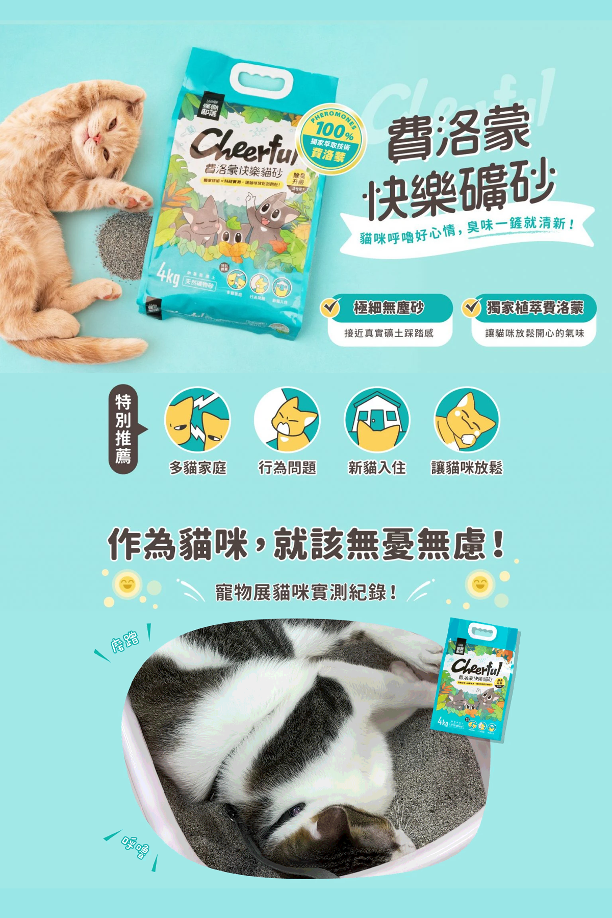 【喵爺】LitoMon 怪獸部落 費洛蒙快樂貓砂-礦砂 4KG/包 (礦型) 低粉塵 秒凝結 超除臭 添加天然萃取費洛蒙