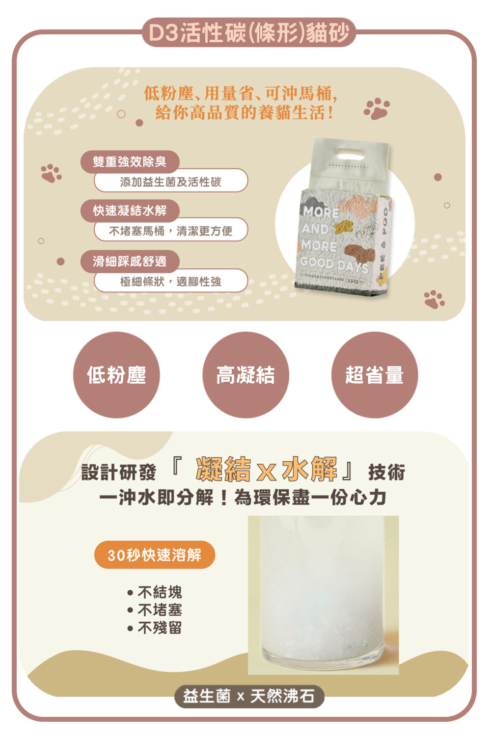 • D3三效除臭活性碳款豆腐砂 (條型) D3三效除臭活性碳款豆腐砂 (條型)
