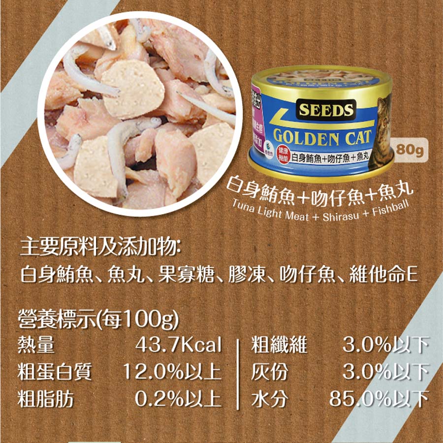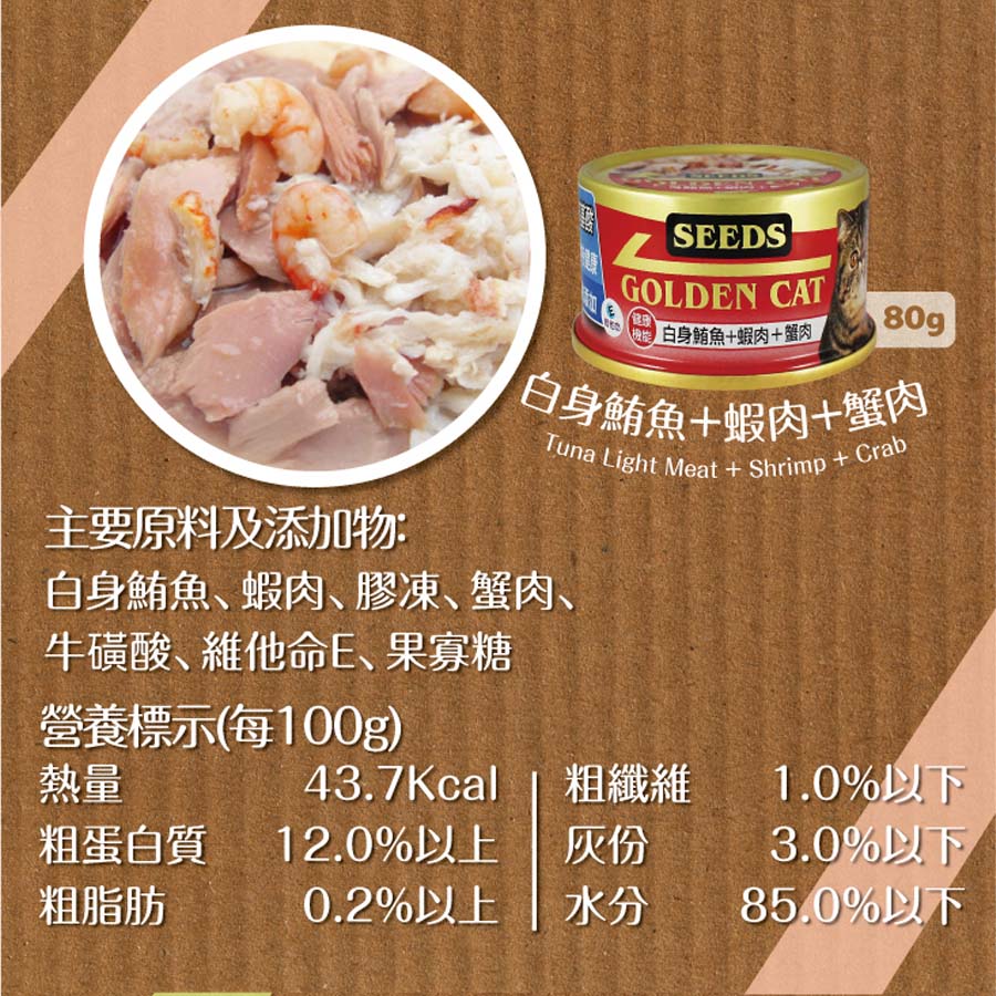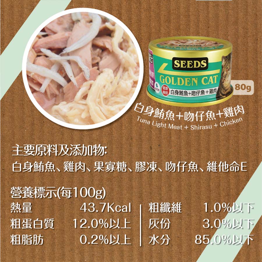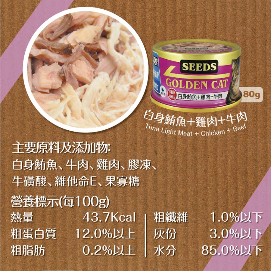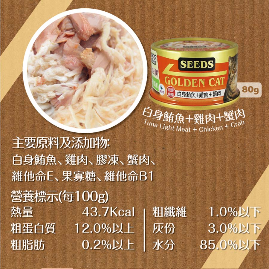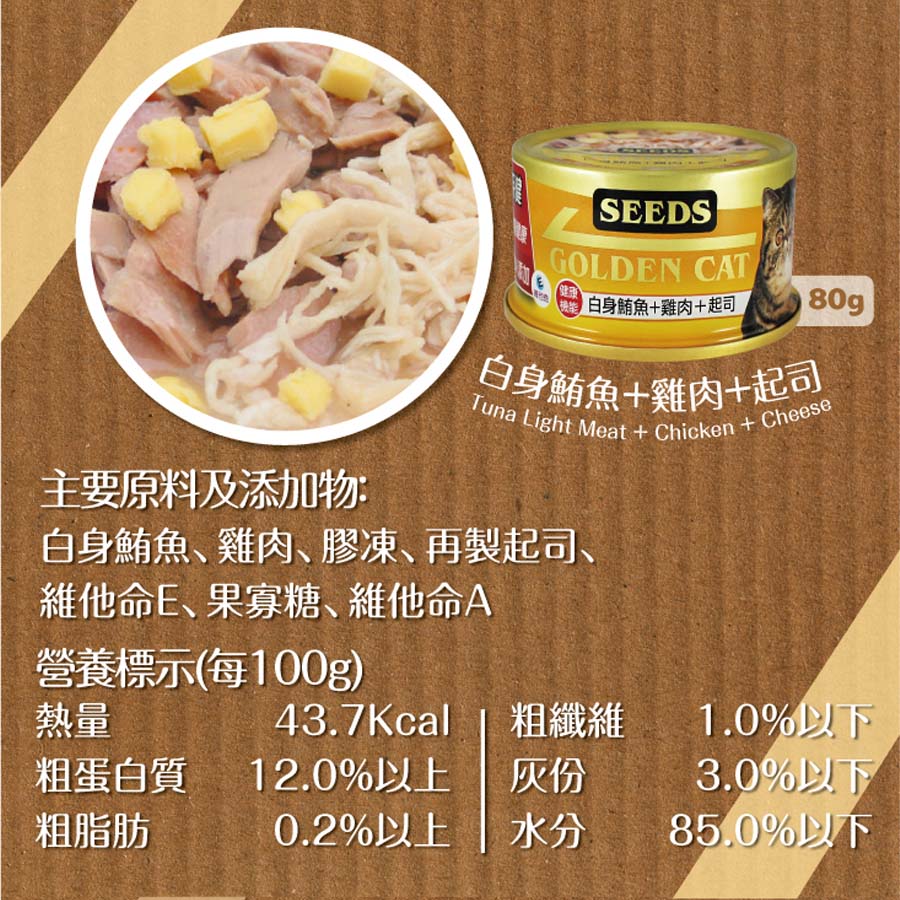 【喵爺】聖萊西 Seeds 黃金貓罐Golden cat 健康機能特級金貓罐 80g 貓咪罐頭 貓罐 金罐 小金罐