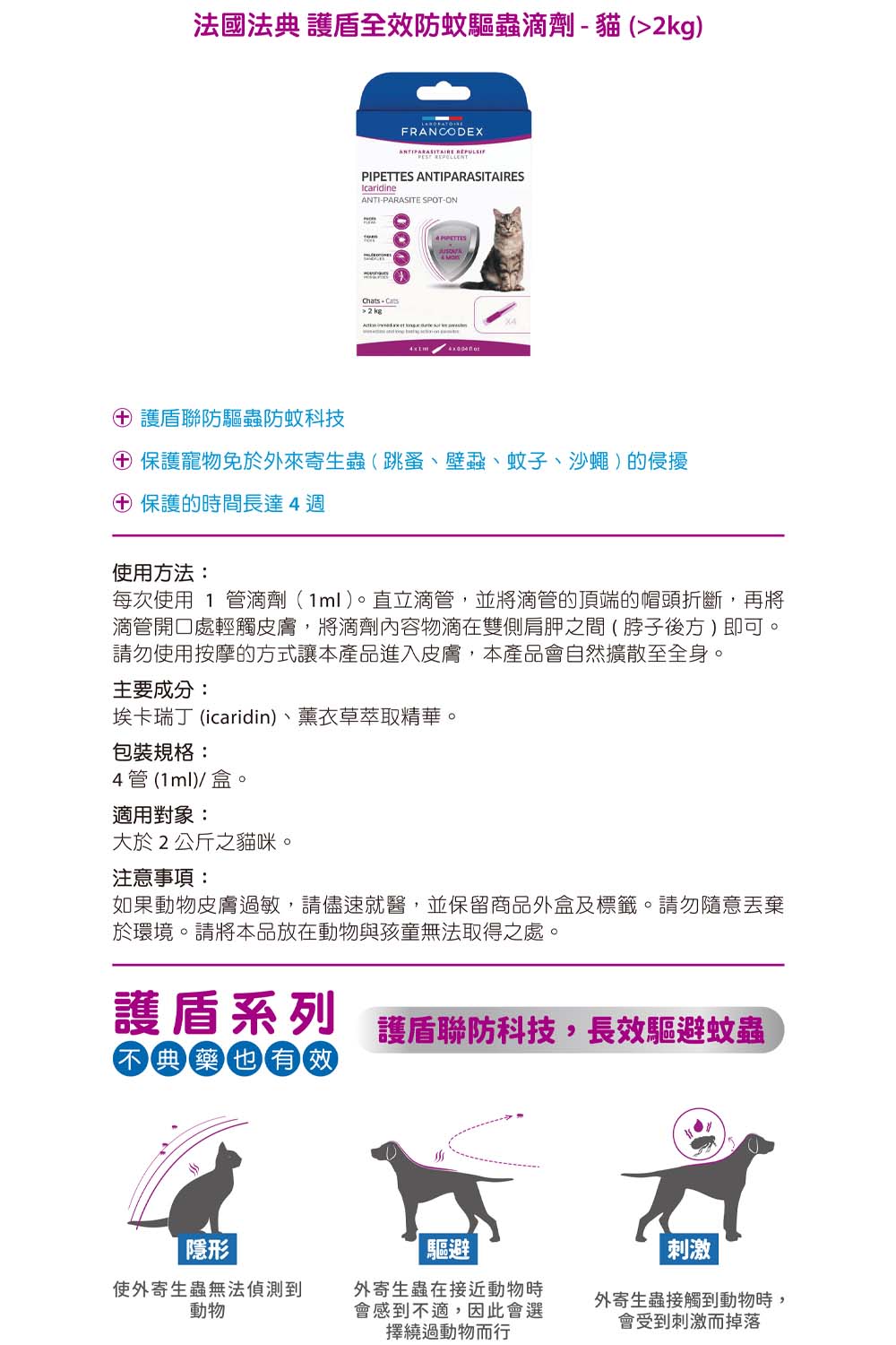 【喵爺】Francodex法國法典 護盾全效防蚊驅蟲滴劑-貓用(>2kg) 驅蚤 驅蟲 驅避蝨 驅跳蚤 貓咪驅蚤 驅蚊