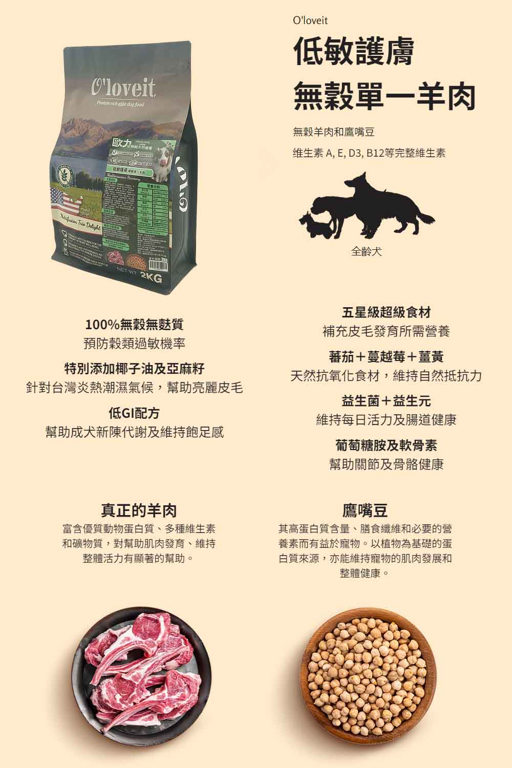 【喵爺】O'loveit 歐力 無穀天然犬糧2KG/6KG 犬專用 寵物飼料 狗狗飼料 幼犬飼料 全齡犬飼料 低卡飼料