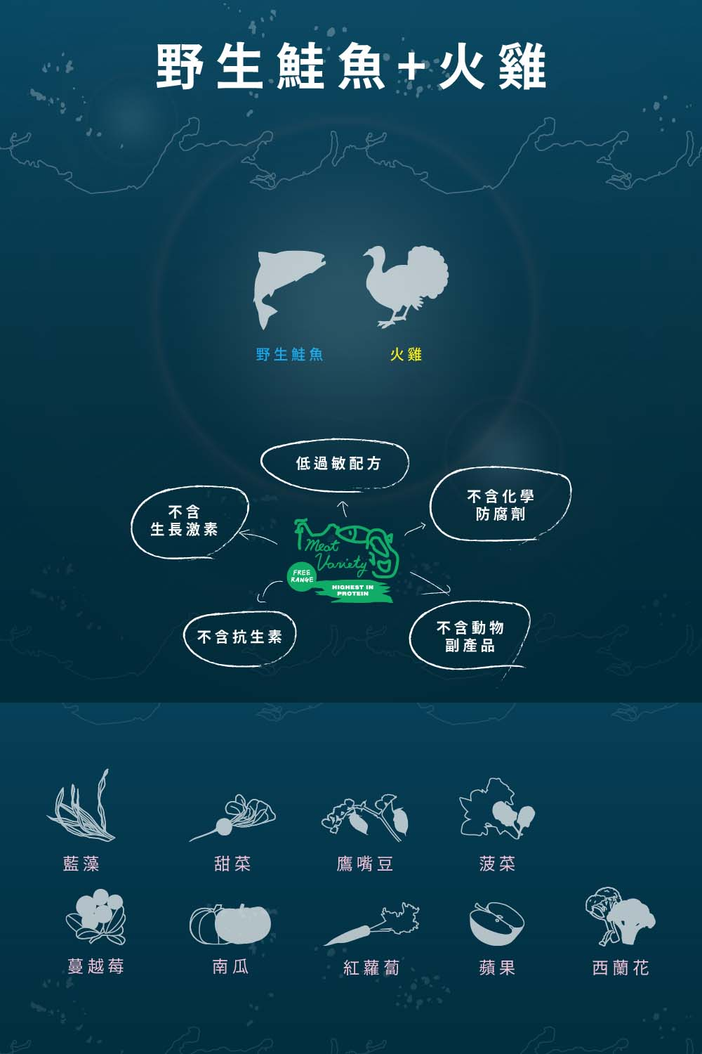 • 無穀野生鮭魚+火雞肉 無穀野生鮭魚+火雞肉