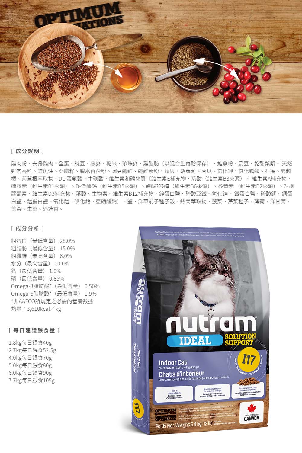 • I17 雞肉+燕麥 室內化毛貓配方 I17 雞肉+燕麥 室內化毛貓配方