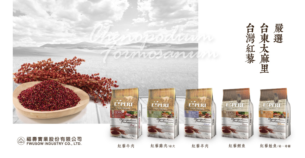 國產非基因改造玉米、雞肉絨、羊肉絨、胚芽米 、胜肽蛋白、全麥、家禽脂肪(以迷迭香萃取物保存)、黑芝麻、台灣紅藜、乳製品、乾燥甜菜、絲蘭萃取物、維生素A、維生素D、維生素E、維生素B1、核黃素、維生素B6、維生素B12、菸鹼酸、氯化膽鹼、泛酸鈣、葉酸、生物素、礦物質(鐵、鋅、銅、錳、硒)