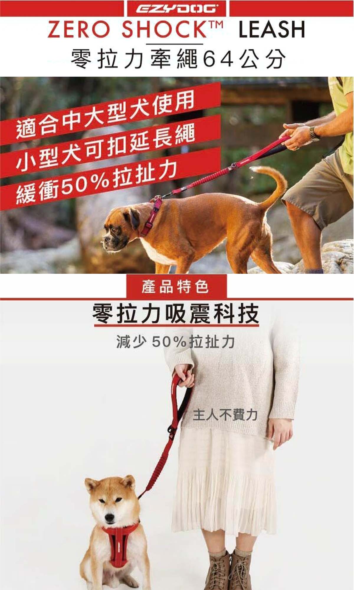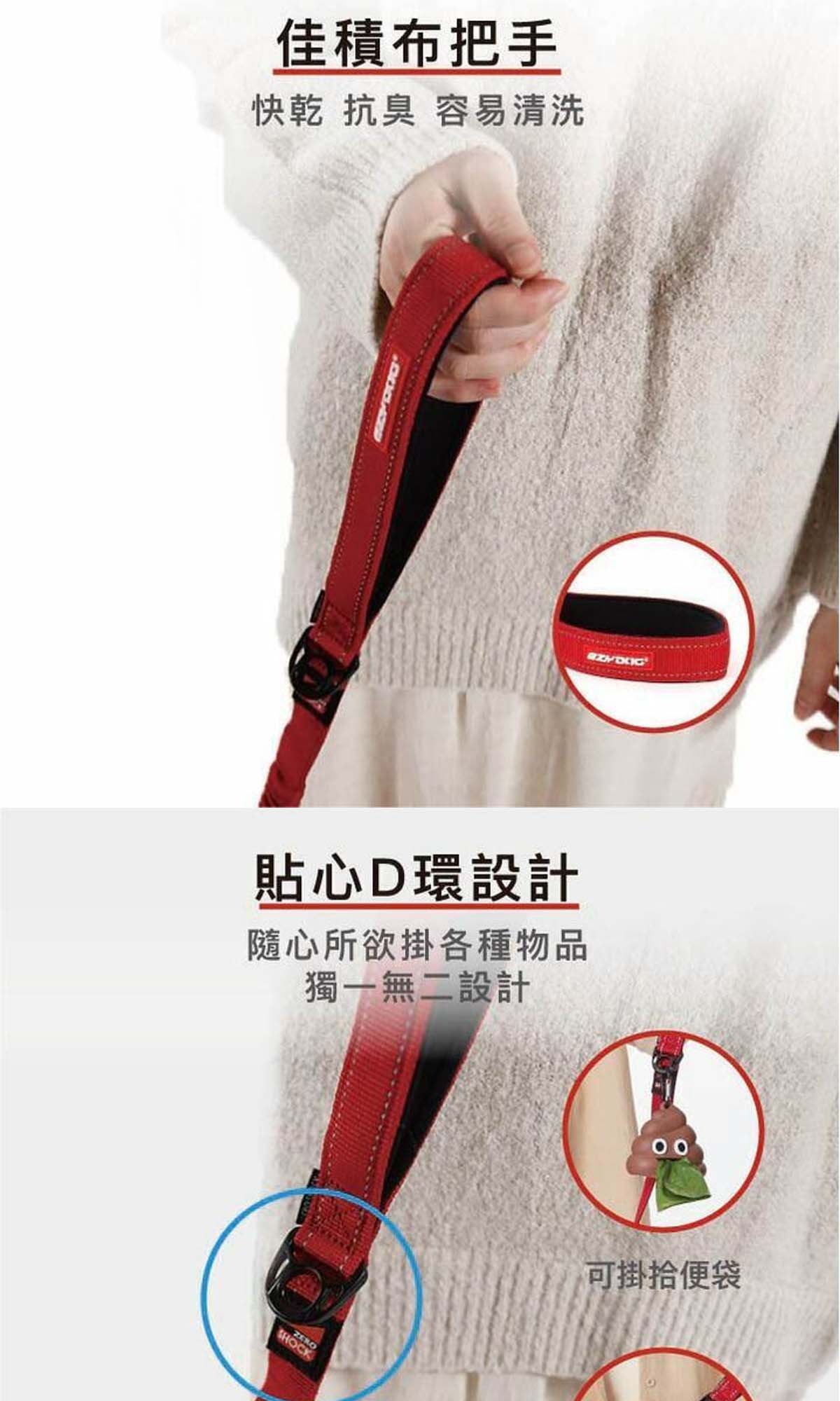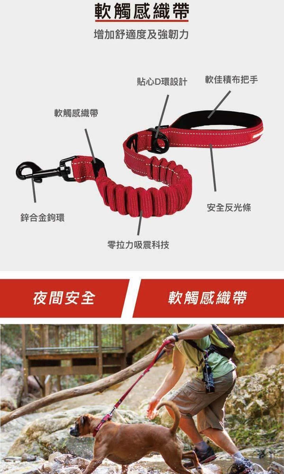 使用獨特的"吸震技術"大幅減少愛犬與主人之間的拉扯!此牽繩也使用了軟觸感織帶和超大佳積布把手,增加您使用上的舒適度。此款特殊的零拉力設計,也榮獲多座國外獎項的肯定