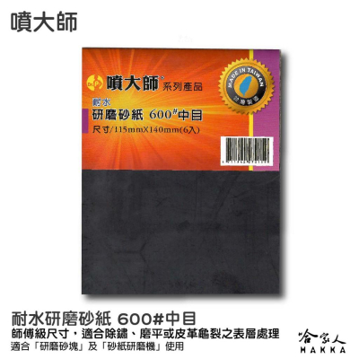 噴大師 耐水研磨砂紙 600 # 中目 6入 師傅級水砂紙 水磨 除銹 拋光 研磨 乾磨 烤漆 哈家人