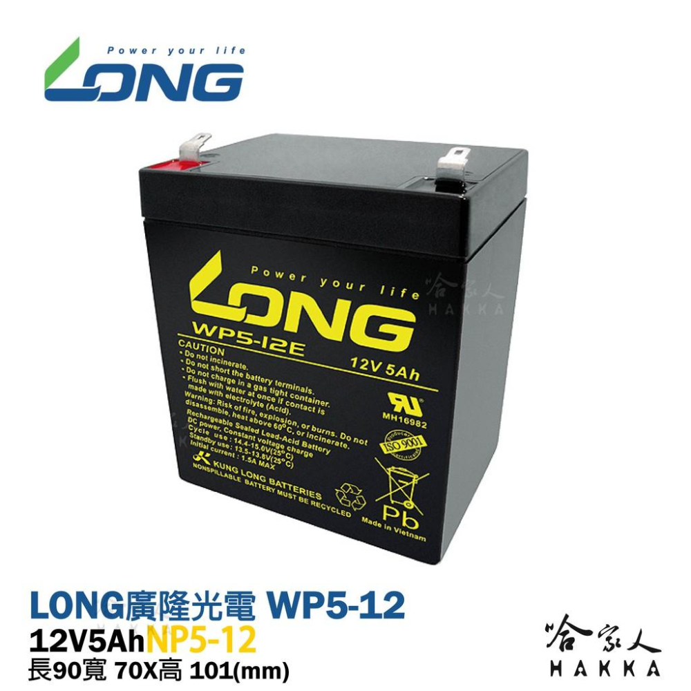 LONG廣隆光電製造 100% MADE IN TAIWAN WP 5-12 同 NP 5-12 UPS 不斷電系統 電動車 通訊系統 長*寬*高=90*70*101(mm) 1.9kg