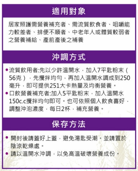 能完整達到身體健康的需求,適合全家人營養補充食品。